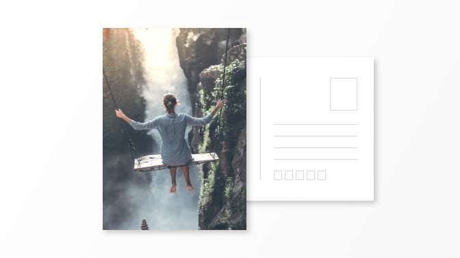 Pohlednice s jednou fotografií na výšku a vlastním textem na zadní straně.